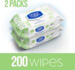 WIPES WILL STAY MOIST: The convenient moisture-lock lid keeps the wipes from drying out! There are 2-packs of wipes. Each pack includes 100 wipes for a total of 200 baby wipes.