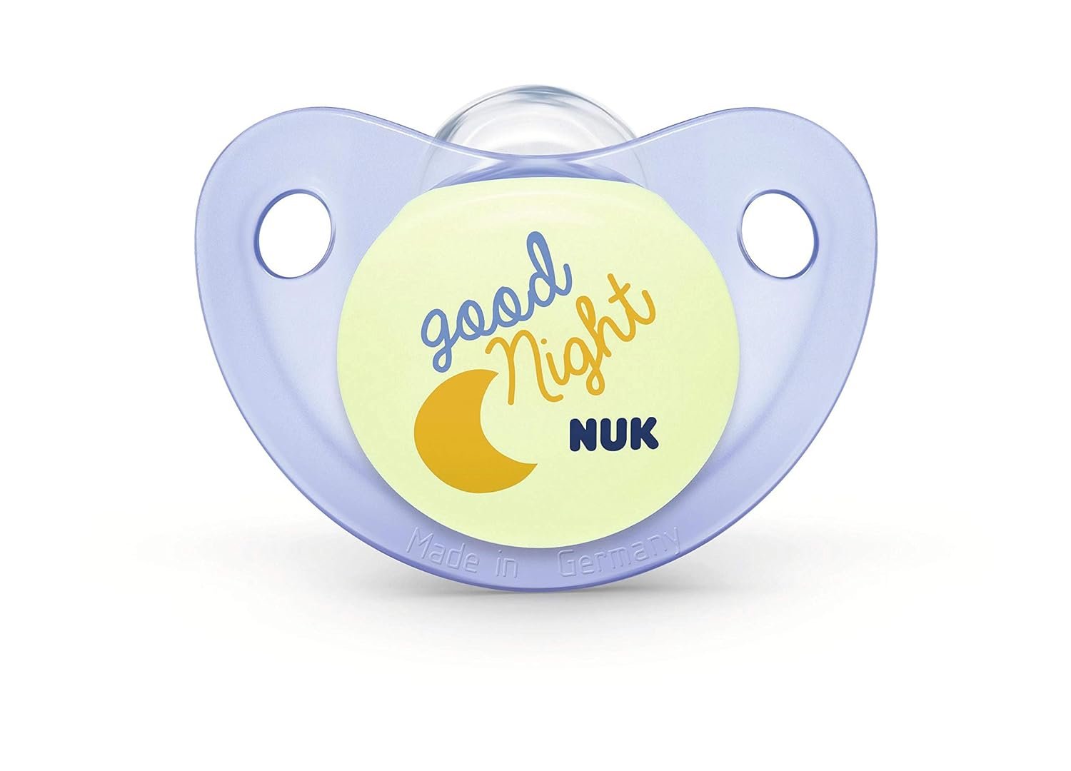 Having a difficult time finding the right pacifier for your baby? The new NUK pacifiers are accepted by 95% of babies and feature the improved orthodontic nipple shape. NUK’s asymmetrical nipple naturally fits baby’s palate and is now improved to allow for more room for a natural sucking motion, reduce pressure on teeth and jaw, and helps prevent teeth misalignment. Invented over 60 years ago by pediatric dentists and doctors, the NUK pacifier is modeled after the natural shape of mom’s nipple while breastfeeding. This makes for an easy transition from breast to pacifier and back. The NUK heart-shaped shield fits perfectly under baby’s nose for easier breathing and prevents irritation. With a convenient glow-in-the-dark feature to help you find lost pacifiers during the night, this pack of 2 orthodontic pacifiers is ideal for your child aged 0-6 months. (Based on Market Research, 2017, tested with 307 pacifier users)