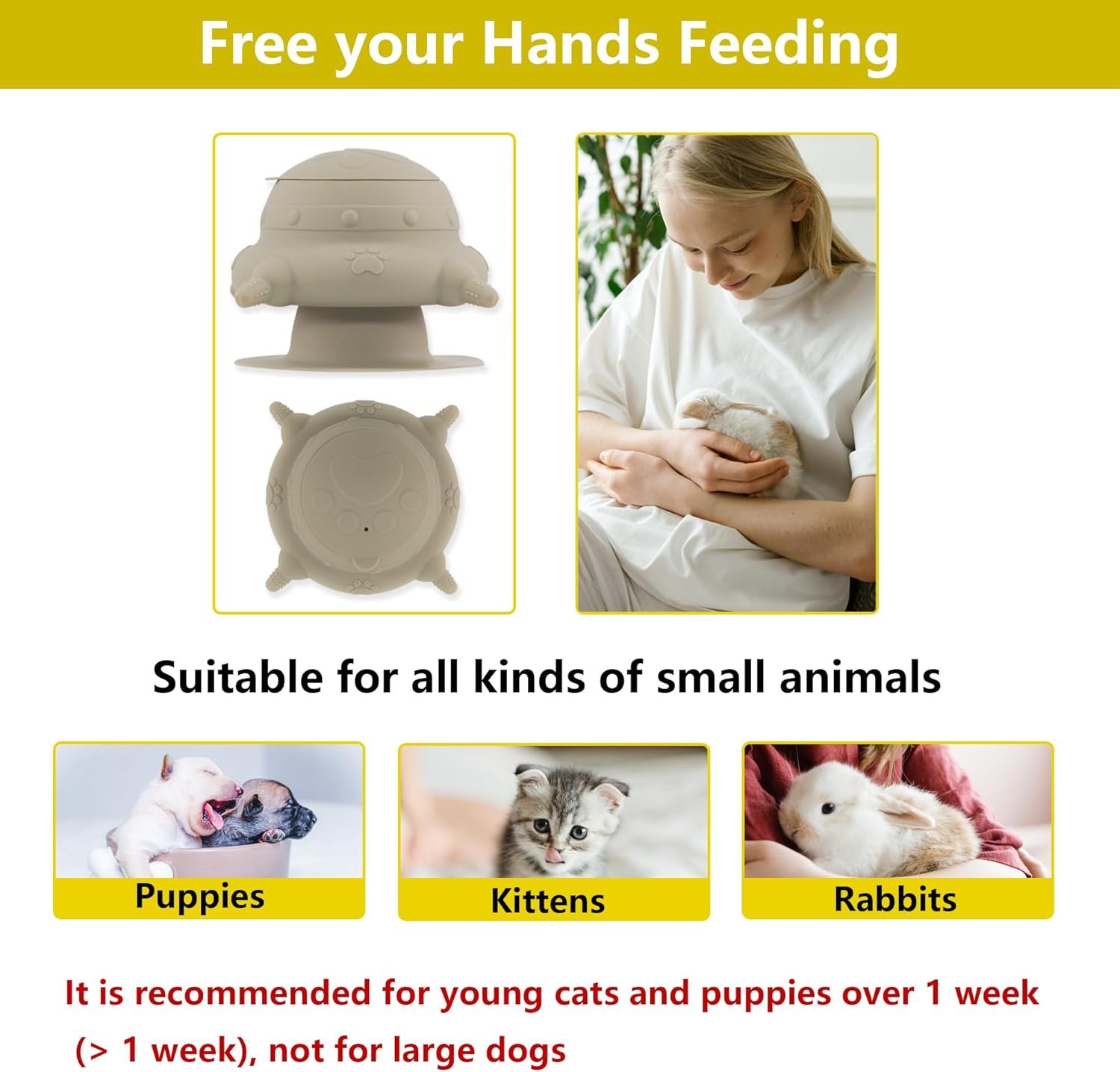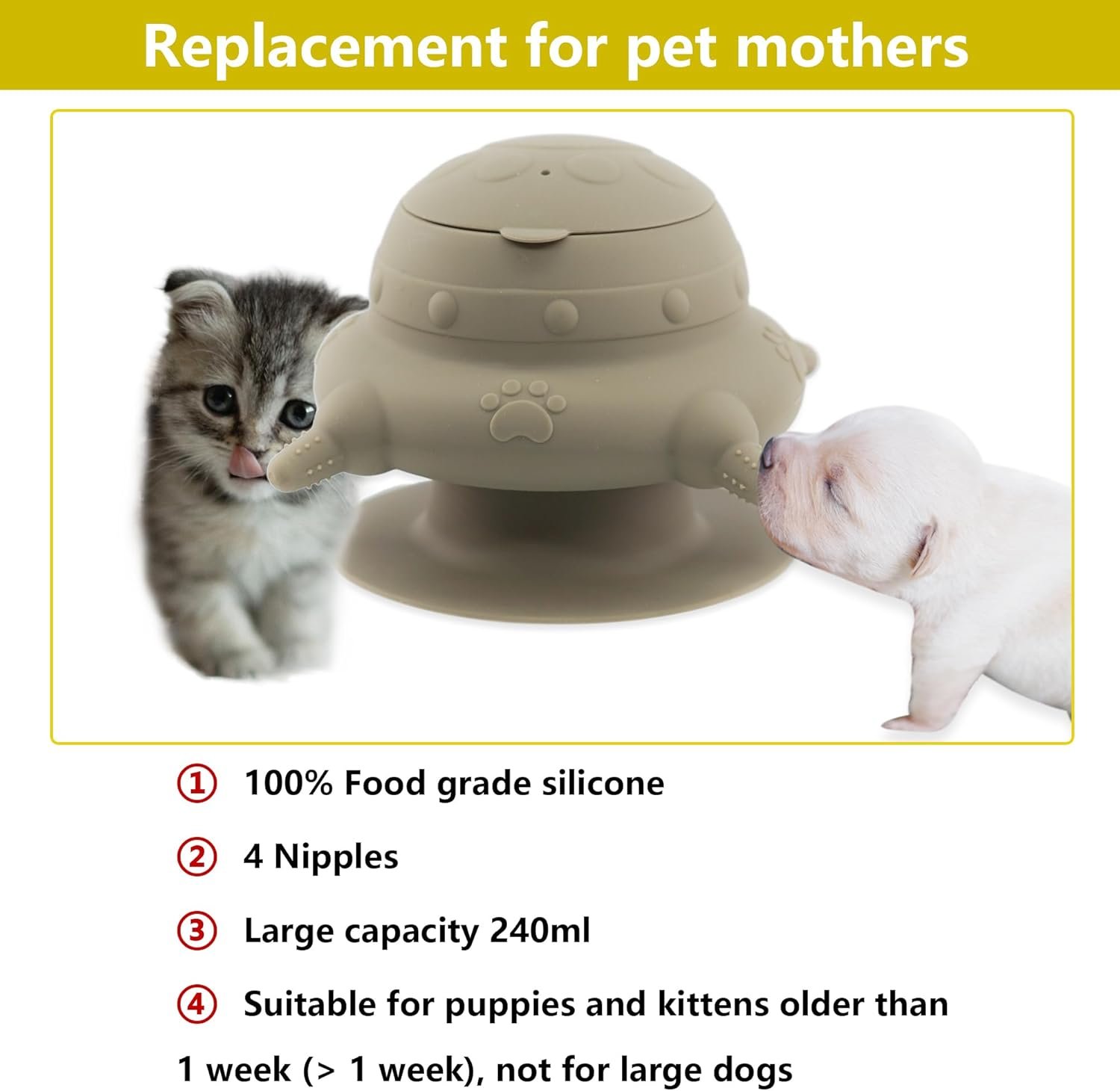 Puppy Bottles for Nursing,Puppy Milk feeders for Multiple Puppies Nipple,Puppy Feeder Milk Bowl,Feeder Bowl for Kittens,Grey