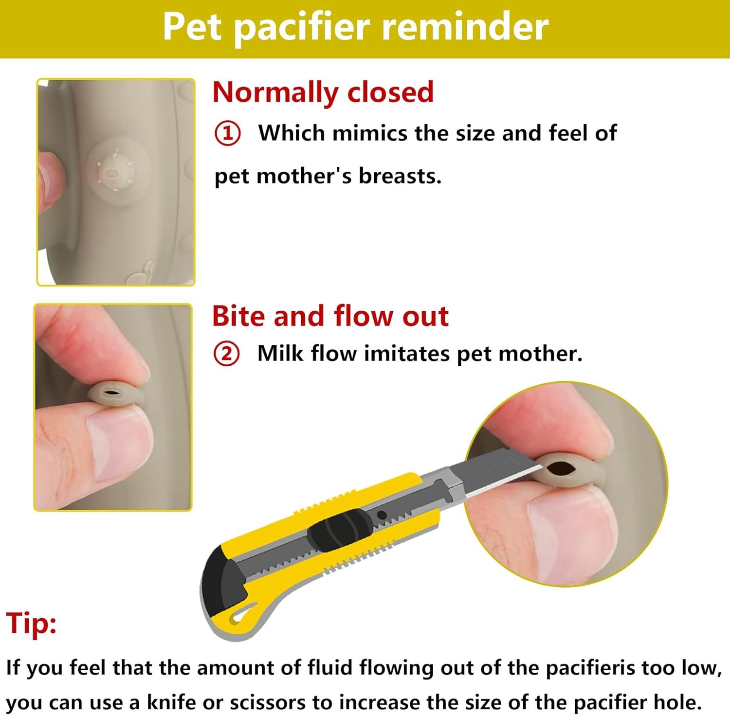 The pacifier is designed to imitate the pet breast, the pet baby is familiar with it, when the pet baby bites and sucks, the liquid will naturally flow out, feeding the pet baby is just like real