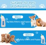 【Pet Nursing Bottle Kit Includes】You will get a 90ml kitten bottle and a 60ml kitten bottle,4 pieces of pacifiers in 2 sizes, 4 pieces of dog nursing syringes in 1 ml, 3 ml,4 cap and a cleaning brushes,ample quantity can provide various needs and replacements.Flexible feeding kit for newborn kittens and puppies.The pet feeding syringe can accurately control the dose of milk, which can avoid vomiting and hiccups caused by small animals eating too much.