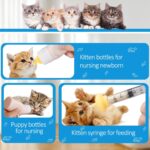 Introducing our Pet Nursing Bottle Kit for Kitten Puppy, the ultimate solution for feeding and nurturing your precious furry friends.This comprehensive kit includes everything you need to provide optimum care for small cat, dog, kitten, puppy, rabbits, squirrels, and other delicate animals.Designed with convenience and functionality in mind, our kit features a variety of essential items to make feeding a breeze.The kitten and puppy feeders are specifically crafted to ensure easy and mess-free feeding.The included nipple and feeder allow for a comfortable and natural feeding experience, resembling the mother’s touch.We understand the importance of proper nutrition for newborn kittens and puppies.That’s why our kit includes a high-quality kitten formula and feeding bottle.For precise and controlled feeding, our kit also includes a kitten feeding syringe.The 1ml syringe allows you to accurately measure and administer the milk replacement, ensuring your little ones receive the right amount of nourishment.We haven’t forgotten about our tiny friends, the baby squirrels.Our kit comes with a baby squirrel feeding kit, complete with a miracle nipple specially designed for kittens.This pacifier-like nipple ensures a comfortable feeding experience for your adorable squirrels. With our Pet Nursing Bottle Kit for Kitten Puppy, you can rest assured that you have all the essential supplies to care for your newborn kittens and puppies.So,give them the love and attention they deserve with our top-quality feeding bottles, nipple replacements, and nursing essentials. Invest in their well-being and provide them with the best start in life. Order our Pet Nursing Bottle Kit for Kitten Puppy today and experience the joy of nurturing your furry companions with ease and confidence.