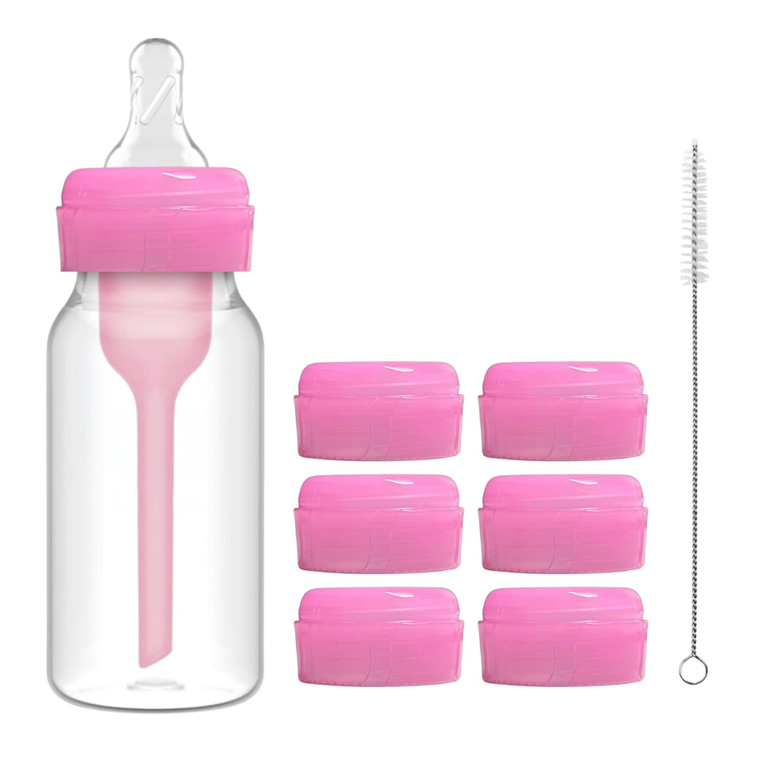 Replacement Baby Bottle Nipple Ring Collars w/Cleaning Brush for Dr. Brown’s Narrow Bottles 4oz & 8oz | 1 Count(Pack of 6) BPA Free | Plastic & Glass Bottles | Mess-Free No Leak or Spills (Pink, 6pcs)
