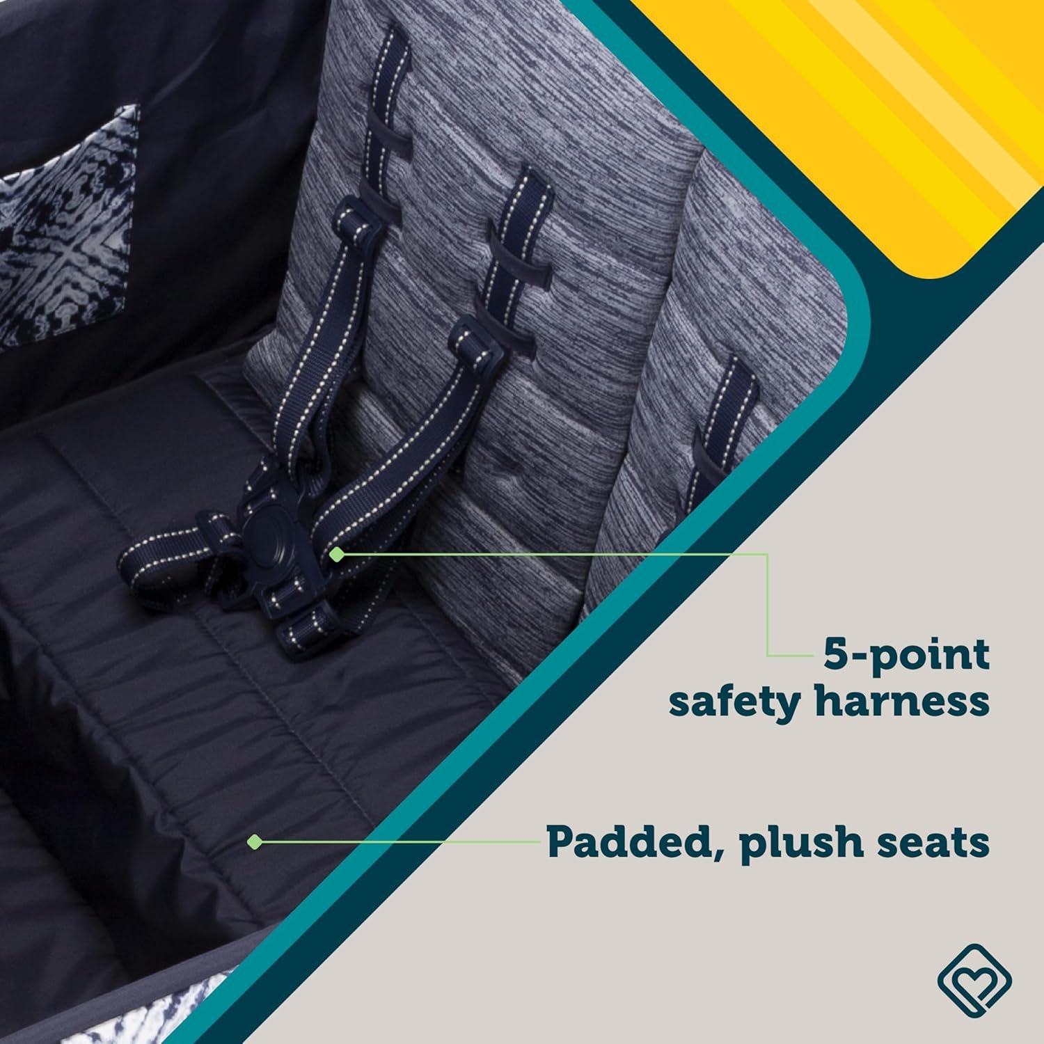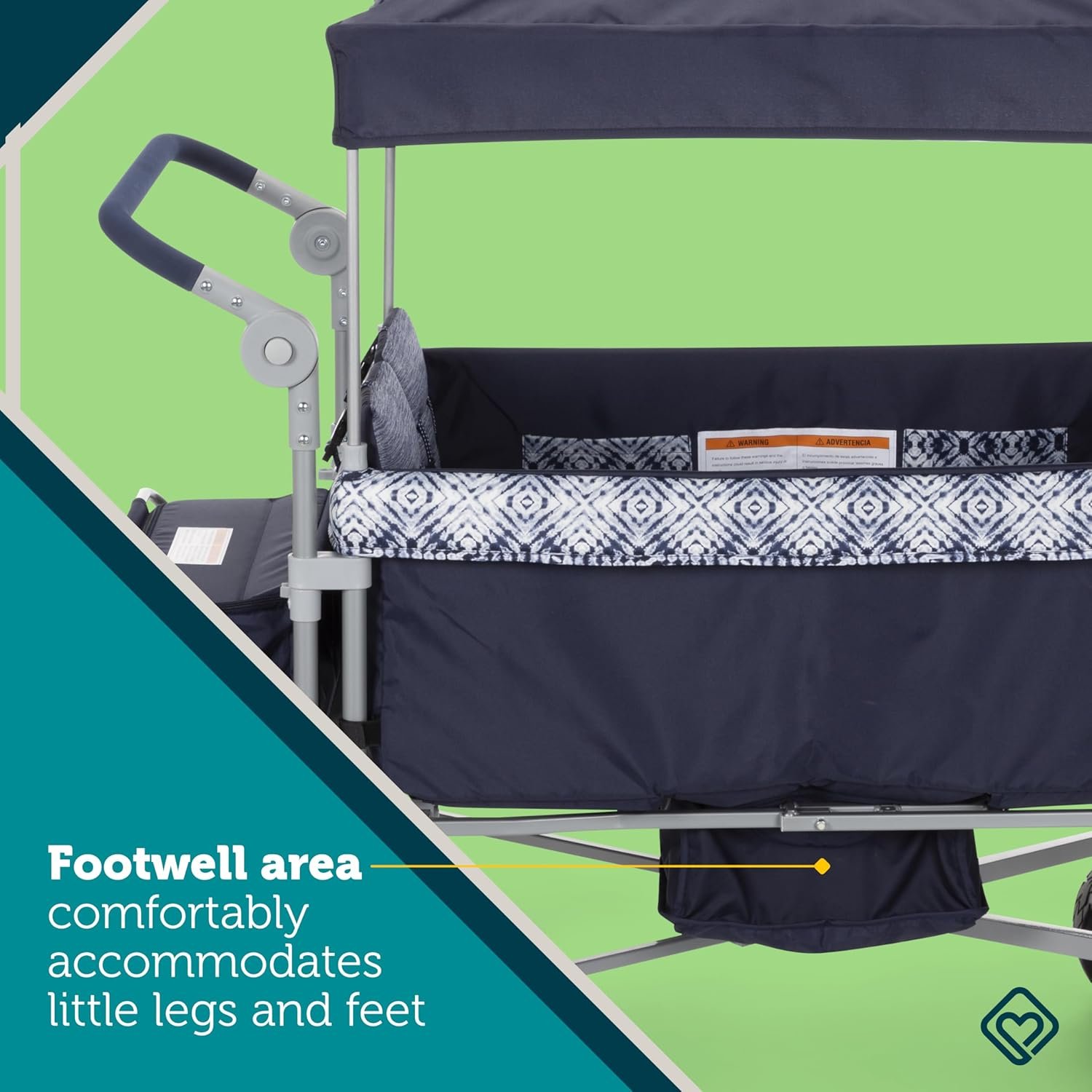 The Safety 1st Summit Quad Wagon Stroller in Navy Ink is made for families seeking a stroller wagon 4 seater. This versatile four seater wagon stroller is designed for kids and cargo, providing a fun ride for your little ones. With individually folding seats, you can configure the wagon stroller 4 seater to carry gear or up to four kids. The all-terrain tires make it easy to navigate parks, trails, or even sandy beaches. Parents will appreciate how maneuverable this toddler and big kid wagon stroller is. It can be pulled from the front handle like traditional stroller wagons or pushed using the fold-away back handlebar. Inside, you’ll find 4 storage pockets, along with 2 exterior pockets and an additional fold-away basket, offering space for your essentials. The footwell area comfortably accommodates little legs and feet. The Summit Quad Wagon Stroller also features a removable canopy with UV protection, helping your kids stay shaded and cool. This kids’ wagon with seats and canopy includes 5-point safety harnesses and padded, plush seats for added comfort. The toddler and big kid wagon with canopy is easy to fold with one hand, making it a foldable wagon for kids that is convenient for quick and easy storage. This kids wagon stroller provides plenty of space and comfort, whether you’re going on an adventure or running errands. The wagon for kids with UV protection canopy is ideal for busy parents who need a reliable and spacious mode of transport. The wagon for kids 4 seater design is built for more kids, more cargo, and more fun.
