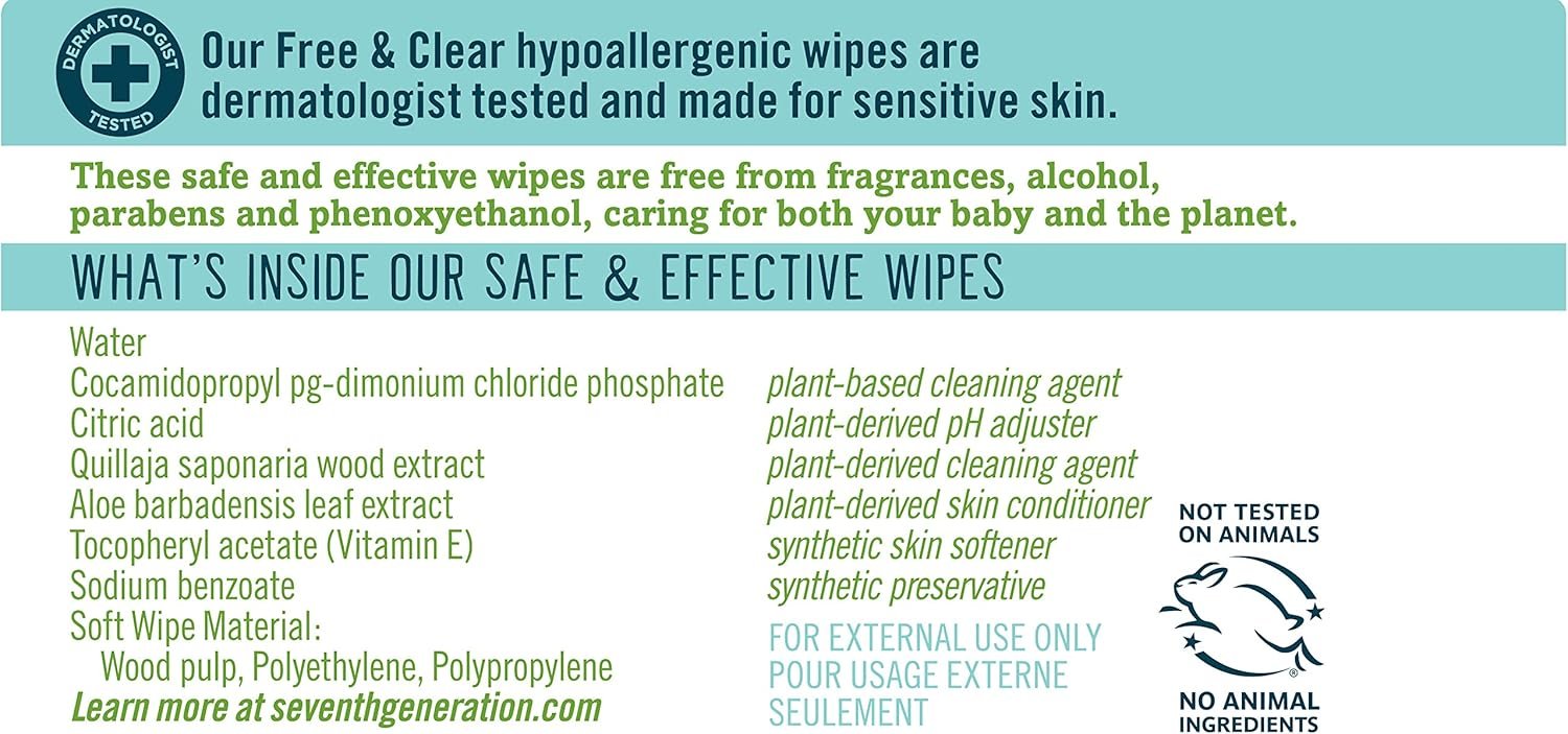 Seventh Generation Baby Wipes are safe for Baby, hands and face