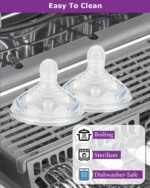 Breast-like Design for Natural Feeding Experience:Featuring a breast-like shape and soft silicone material, our nipples provide a natural latch and feeding experience. This design helps ease the transition between breastfeeding and bottle-feeding, making it easier for both baby and mom.