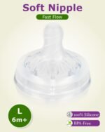 Ultra-Soft, BPA-Free Silicone for Baby’s Comfort:Made from high-quality, BPA-free silicone, our nipples are ultra-soft and gentle on your baby’s delicate gums. The material is durable, easy to clean, and safe for everyday use.