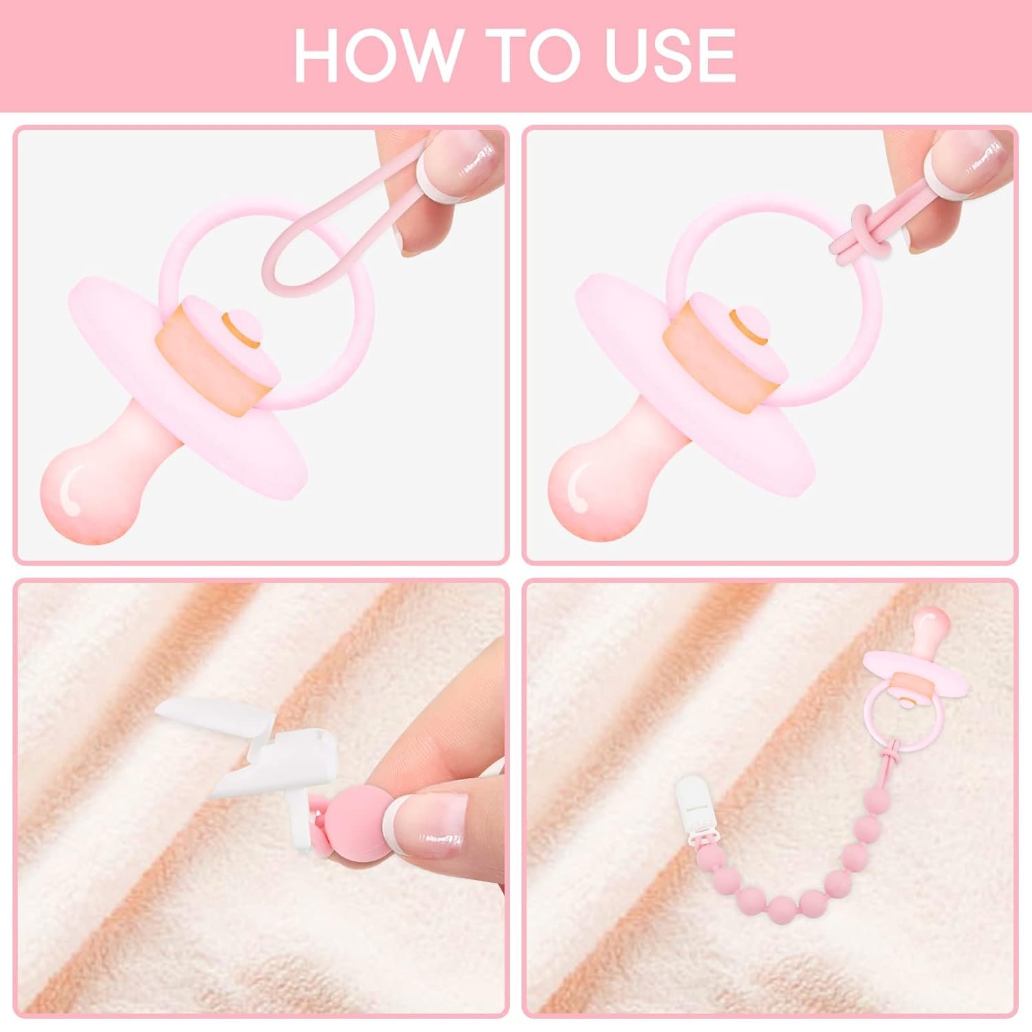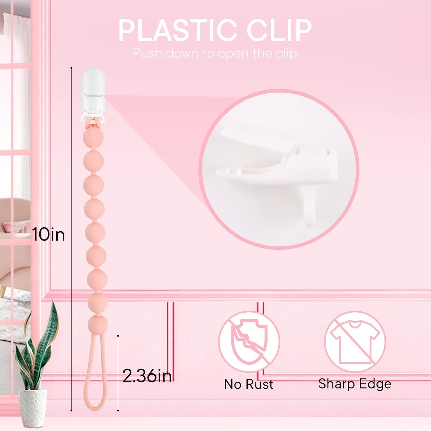 【Versatile】Pacifier clip can attach to pacifiers, clothes, strollers, car seats and etc. Pacifier clips are universal to fit any brand pacifiers or teether toys, which can avoid the pacifier or teether toys get lost.