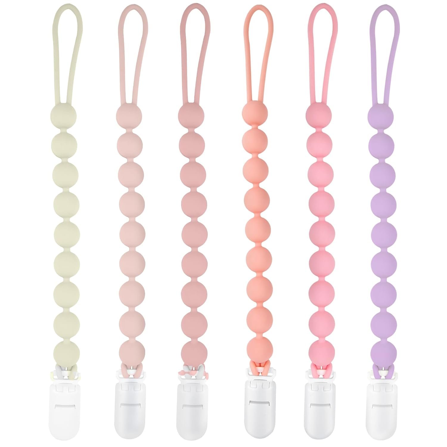 【Perfect Gift】6 pack beautiful color pacifier clips for boys and girls, suitable for most kinds of outfits. This silicone pacifier clip is suitale for any occassions and is a perfect shower gift.