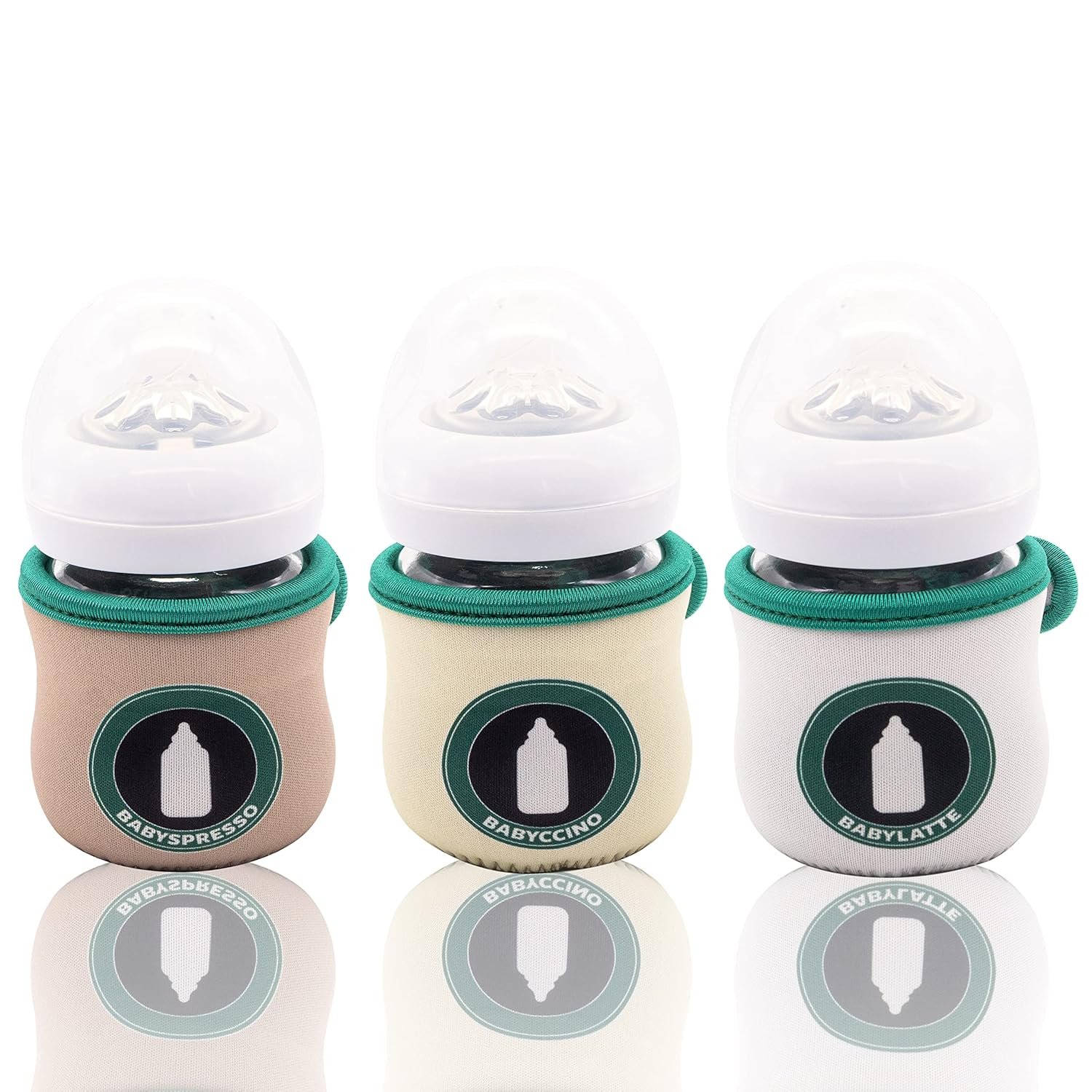 Sleeve Covers for 4 oz Philips Avent Glass Baby Bottle | Adjustable Sleeves | Heat and Cold Retention | Neoprene – Juice Cleanse | Non Slip Grip | Set of 3… (Babyccino)