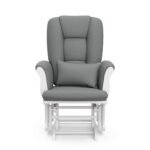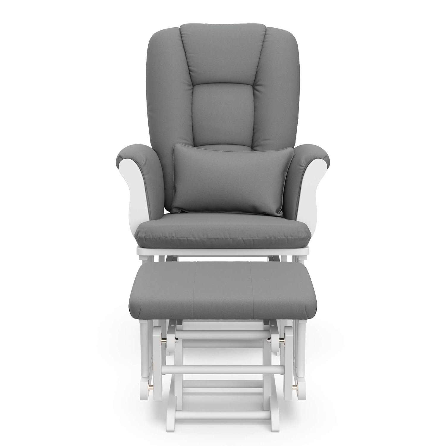 Storkcraft Tuscany Custom Glider and Ottoman with Free Lumbar Pillow (White/Grey) – Cleanable Upholstered Comfort Rocking Nursery Chair with Ottoman