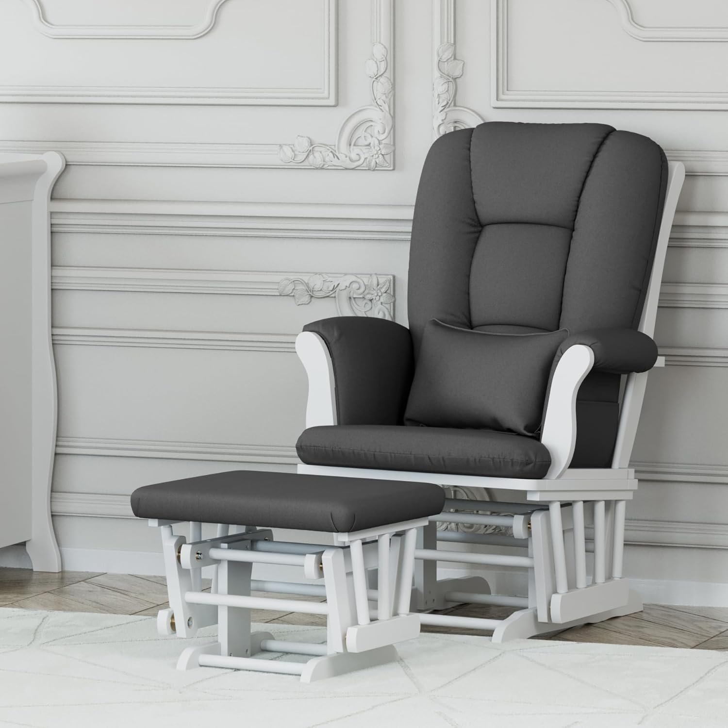 DURABLE CONSTRUCTION: Features a solid wood base, making this glider and ottoman a dependable choice for lasting use.