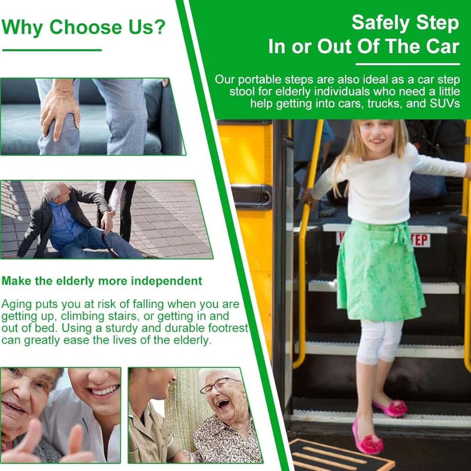 Versatile Step Stool for Multiple Uses: Whether as a bed and bath aid, kitchen step stool, or a car step for easy vehicle entry, this wooden step stool serves various purposes. Especially useful for seniors and children, enhancing independence and convenience.