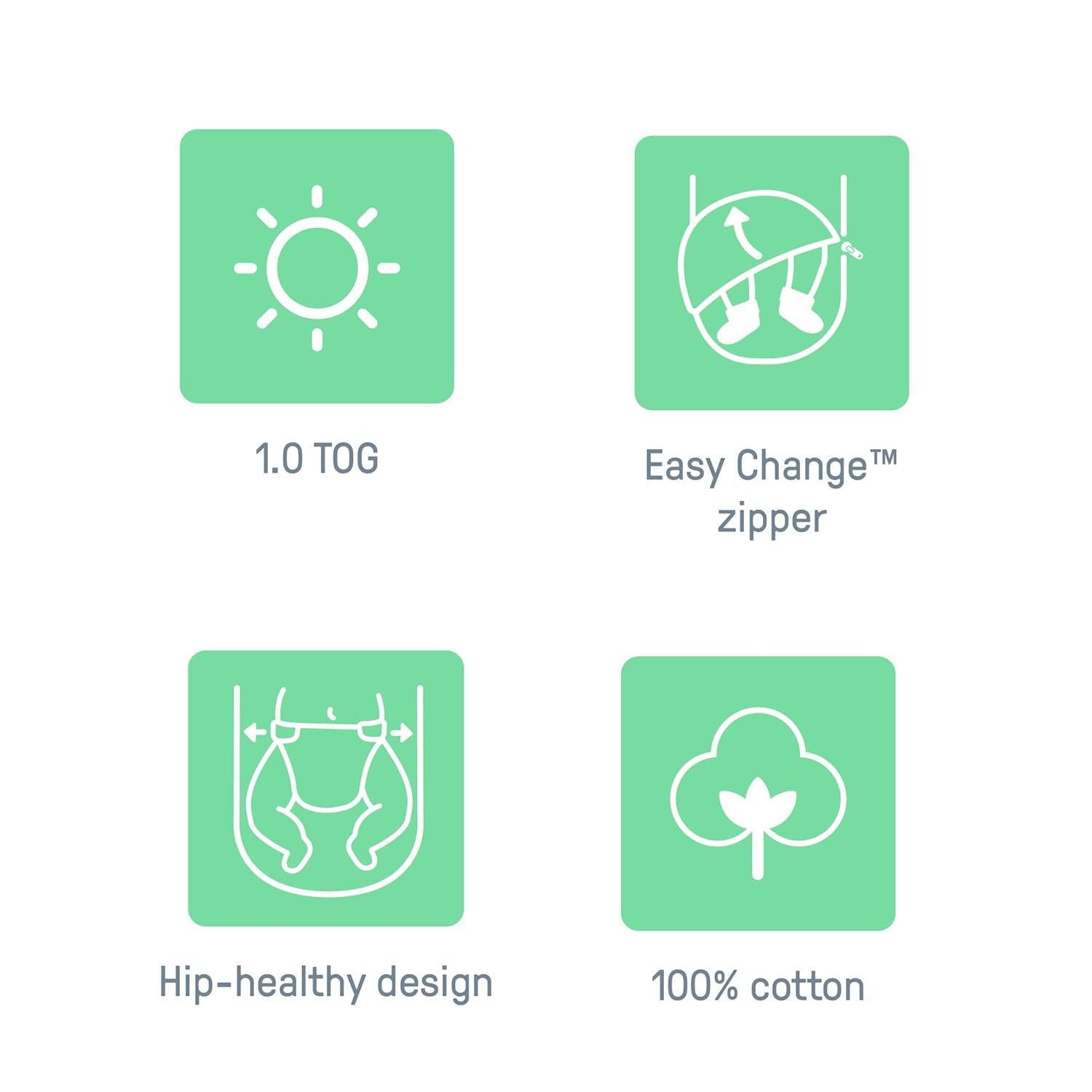The wings of this adjustable swaddle blanket wrap around baby for the perfect fit every time, and the Easy Change zipper along the bottom makes diaper changes quick and quiet
