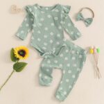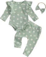 Featuring a rib knit bodysuit top, fly ruffled long sleeve romper, and fashion daisy flower print pant and headband, our newborn outfit sets are both stylish and practical.baby clothes for girls newborn girl outfits baby girl fall outfits baby girl fall clothes infant baby girl outfits