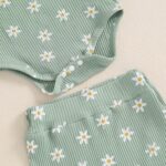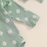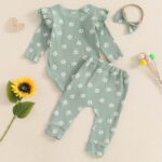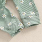 TheFound Toddler Baby Girl Outfits Cute Daisy Print Ruffled Shoulder Ribbed Romper Long Pant Fall Winter Newborn Baby Clothes