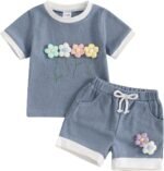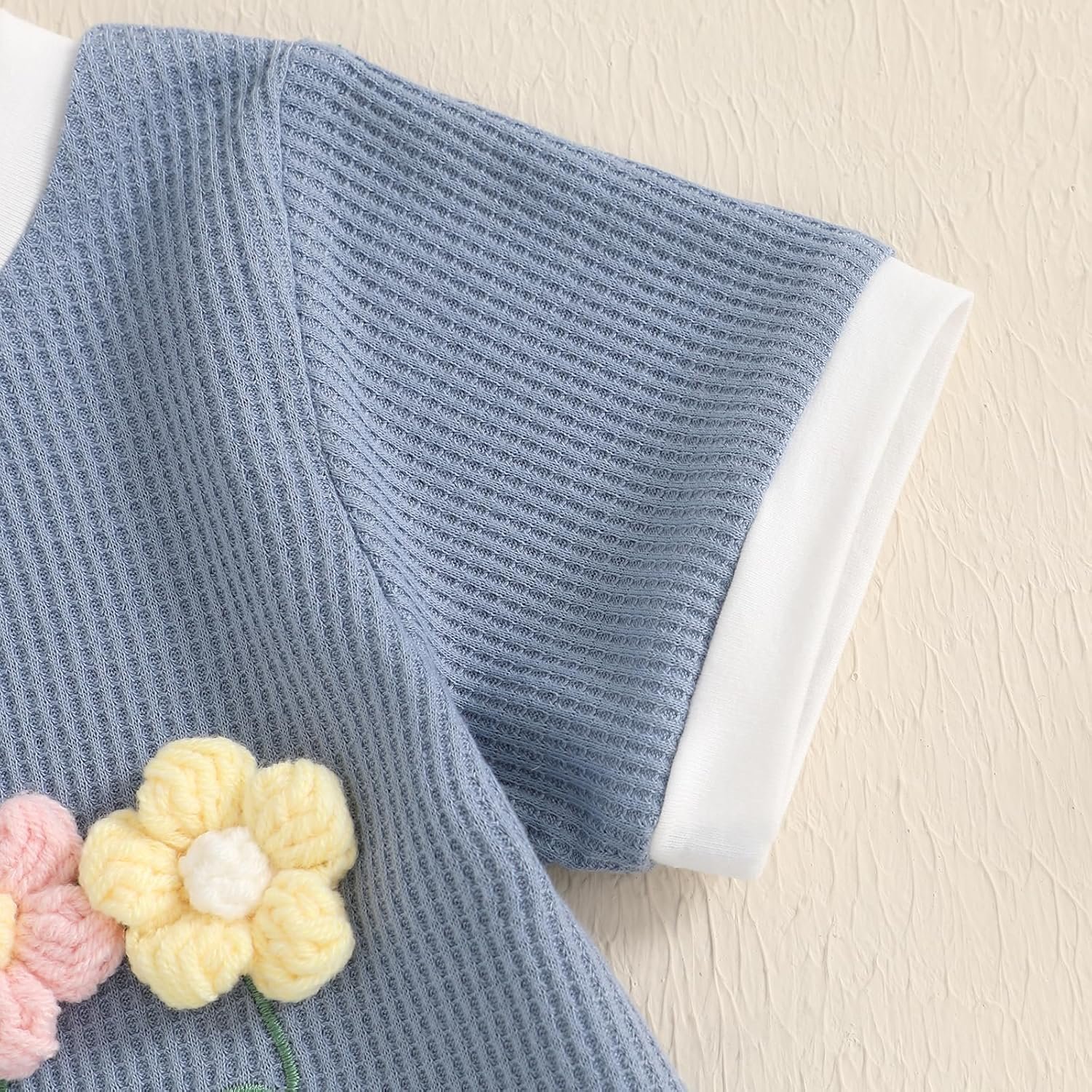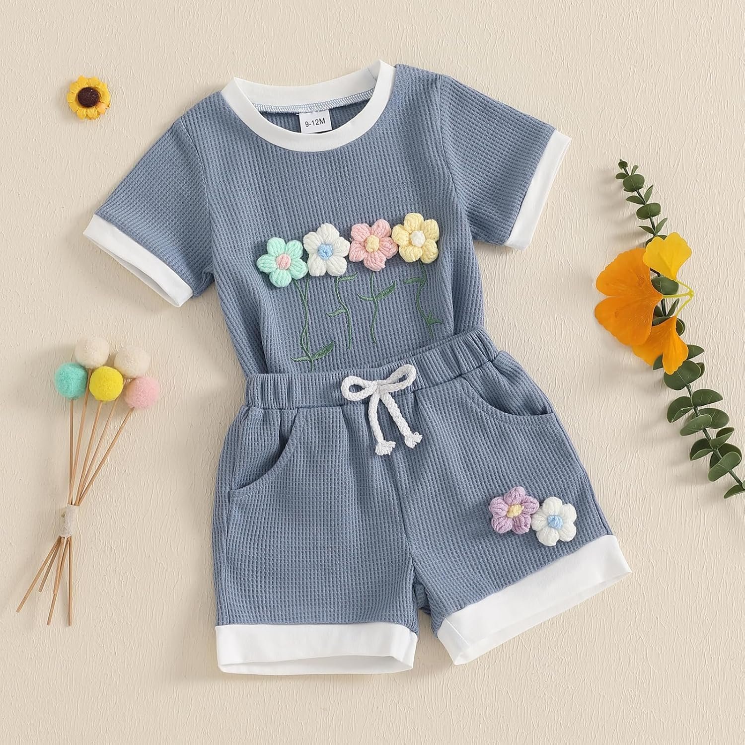 Toddler Baby Girl Outfits Floral Summer Clothes Infant Spring Waffle Short Sleeve Shirt Tops Cute Shorts Set