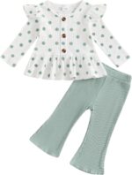 Be the first to review “Toddler Baby Girls Outfits Ribbed Long Sleeve Ruffle Hem Tops + Flared Pants Sets 2Pcs Infant Fall Winter Clothes” Cancel reply