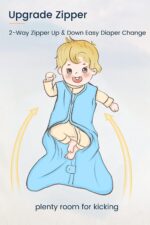 CRAFTED WITH CARE: Up & down closures Great for middle-of-the-night diaper changes,and upgraded 2-way zipper with zipper guard at both ends prevents accidental scratching. The sleeveless design helps your baby transition from swaddling to having their arms free.