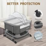 ADJUSTABLE HEIGHT AND TILT ANGLE: Easily adjusts from 28″ to 32.7″ to fit any bed or daily situation, adjustable tilt angle prevents baby from refluxing, lockable 360° swivel wheels provide smooth movement and a firm grip, making daily care a breeze