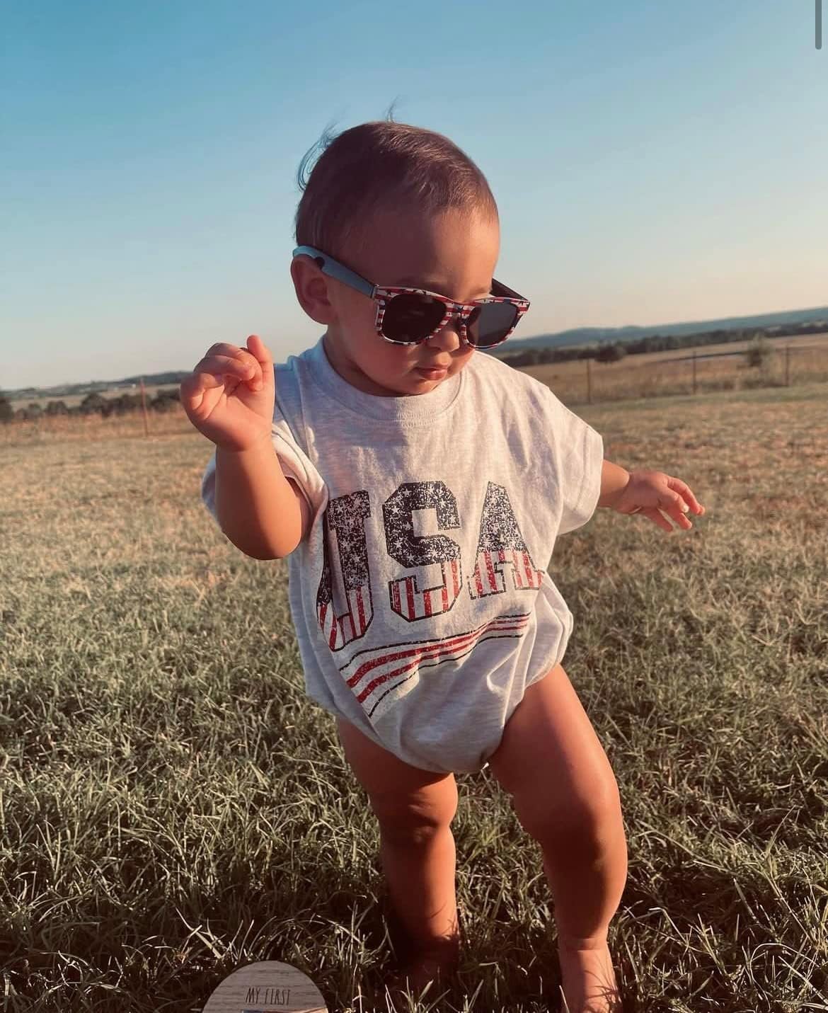 Twopumpkin 4th of July Baby Boy Girl Outfit Newborn Toddler Bubble Romper Retro Fourth Of July Clothes