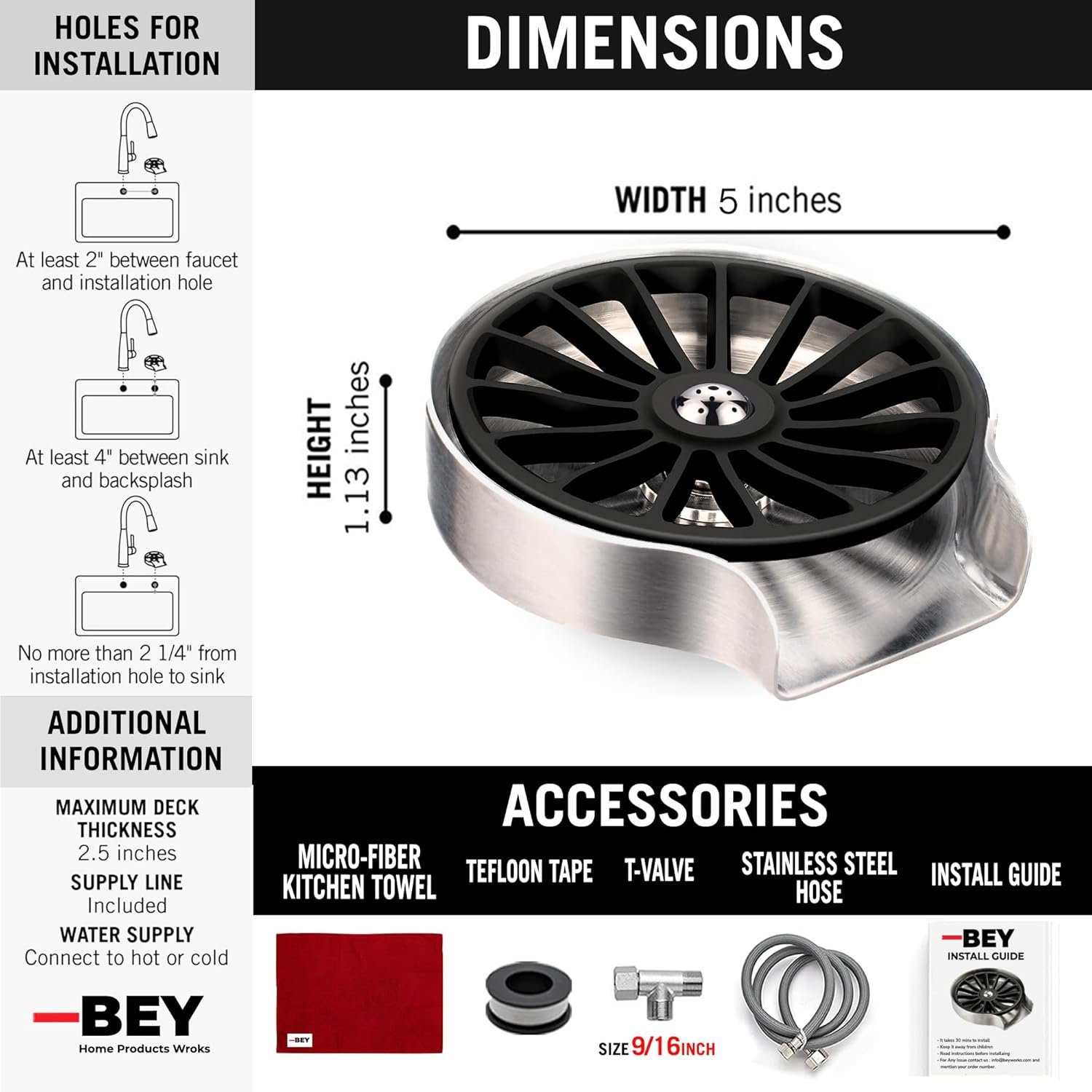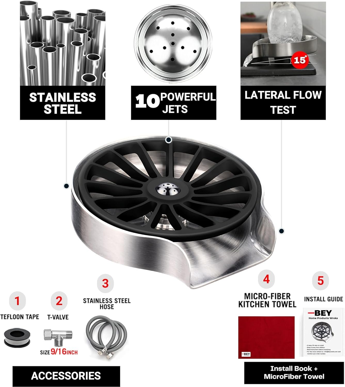 ✅ ???????????????????????????????????????????? ???????????????????????????????? 6 Parts : BEY GLASS RINSER – Tee(3/8″) – Stainless Steel Water Tube – Installation Book – Teflon Tape – Micro Fiber Kitchen Towel