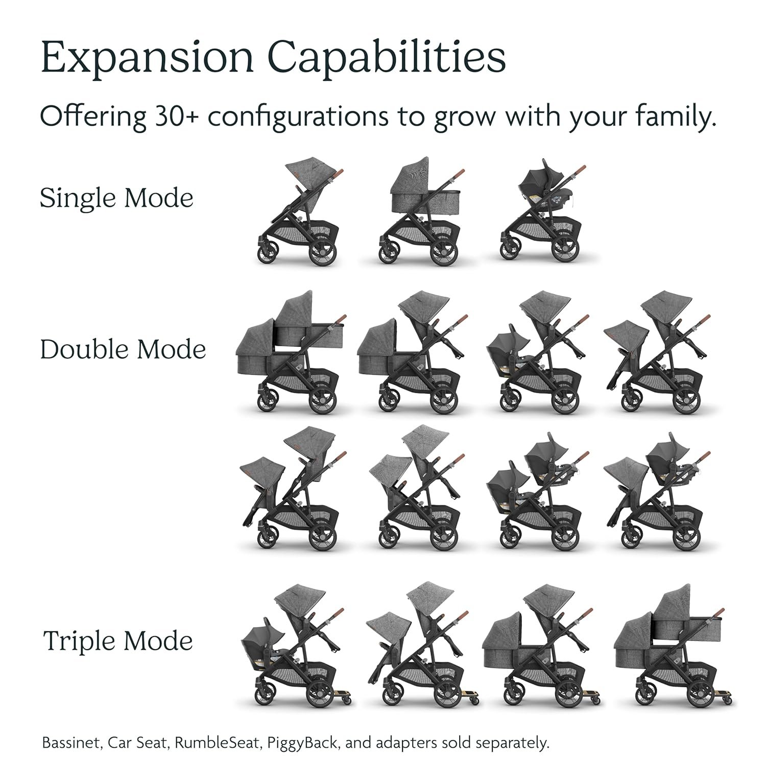 DESIGNED TO FIT EVERY FAMILY: The reimagined Vista V3 Stroller offers 30+ configurations to grow with your family starting from birth up to 3 children in tow