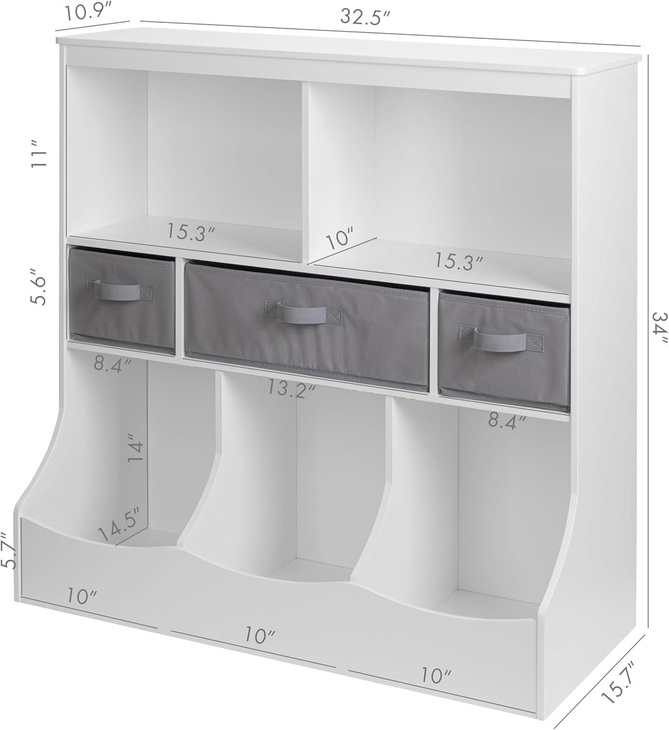 STURDY & STYLISH: Our Kids Storage Organizer, Crafted From Durable Engineered Wood. This Child-Safe Organizer With Easy-To-Clean White Finish Includes Bins And Cubes For Toys. Its Clean, Painted Design Adds A Touch Of Elegance To Any Room.