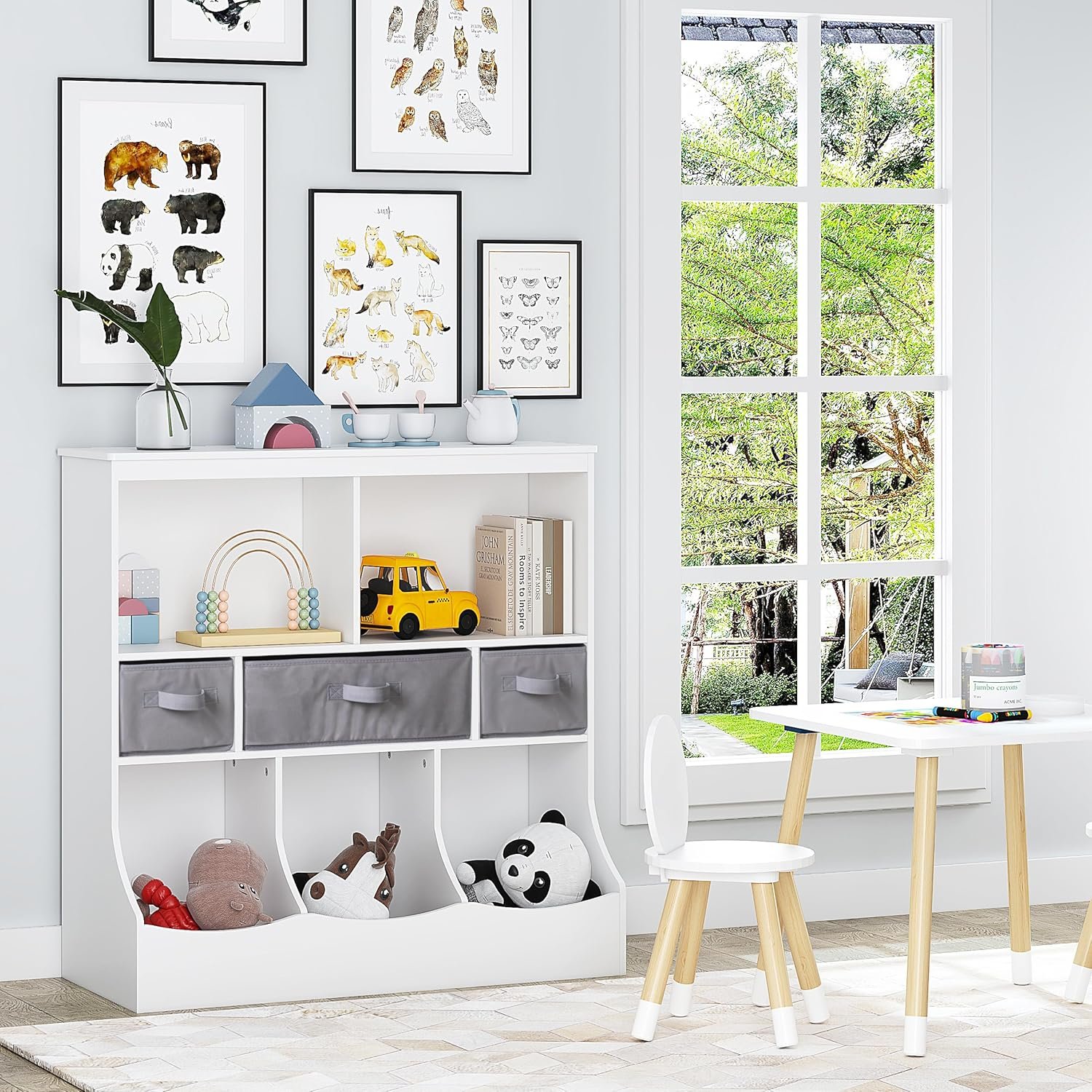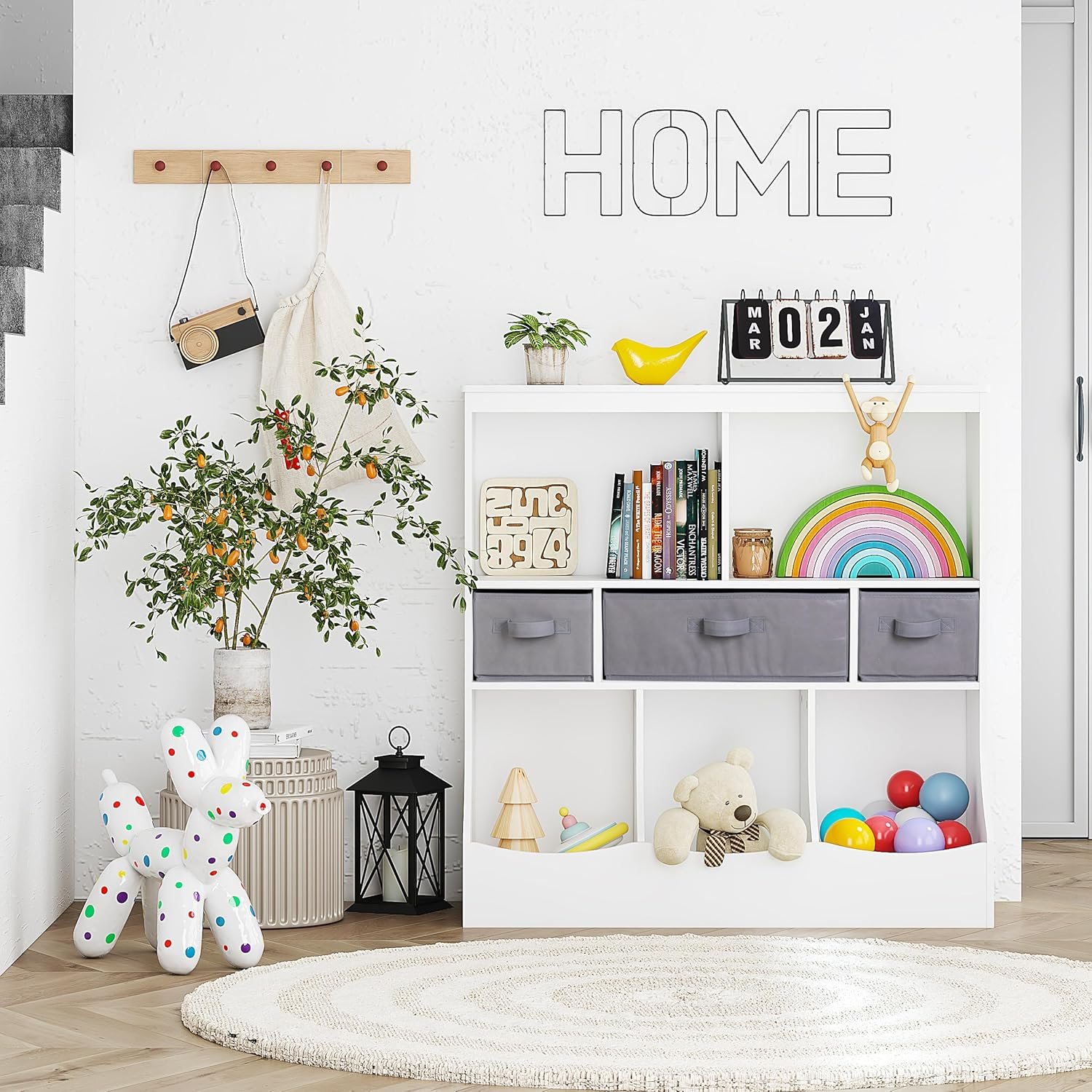 Versatile Design: This Kids Bookcase and Toy Storage Is The Perfect Piece of Furniture for The Nursery, Children’s Rooms, Playrooms and Game Rooms, Entryways and Foyers, and Family Rooms.