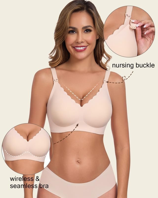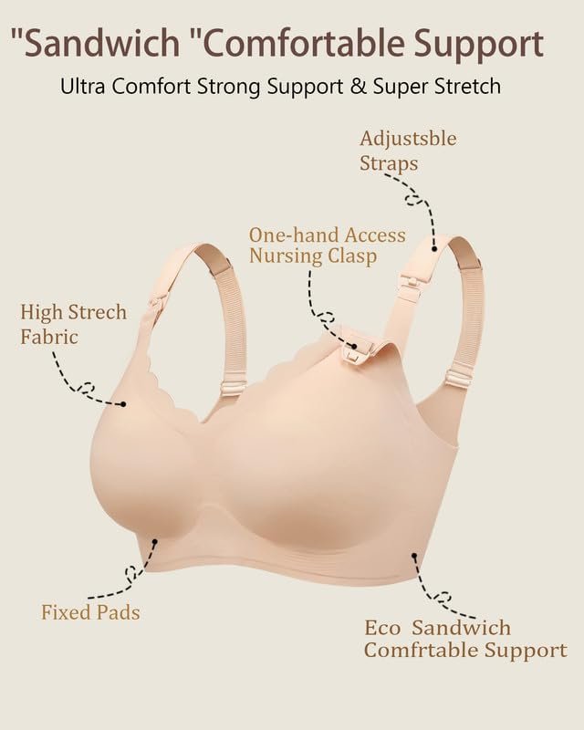 Vinfact Hands Free Pumping Bra Adjustable Breast-Pumps Nursing Bras Comfort Maternity Breast Pump Bra – Beige S