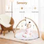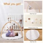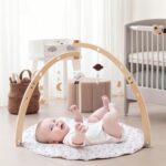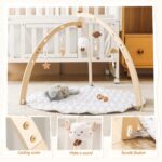 🗯️High Quality Material: Our baby play gym frame with baby play mat and hanging toy is made of premium and complete beech and pine wood and cotton,100% eco-friendly natural materials smooth and soft.