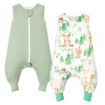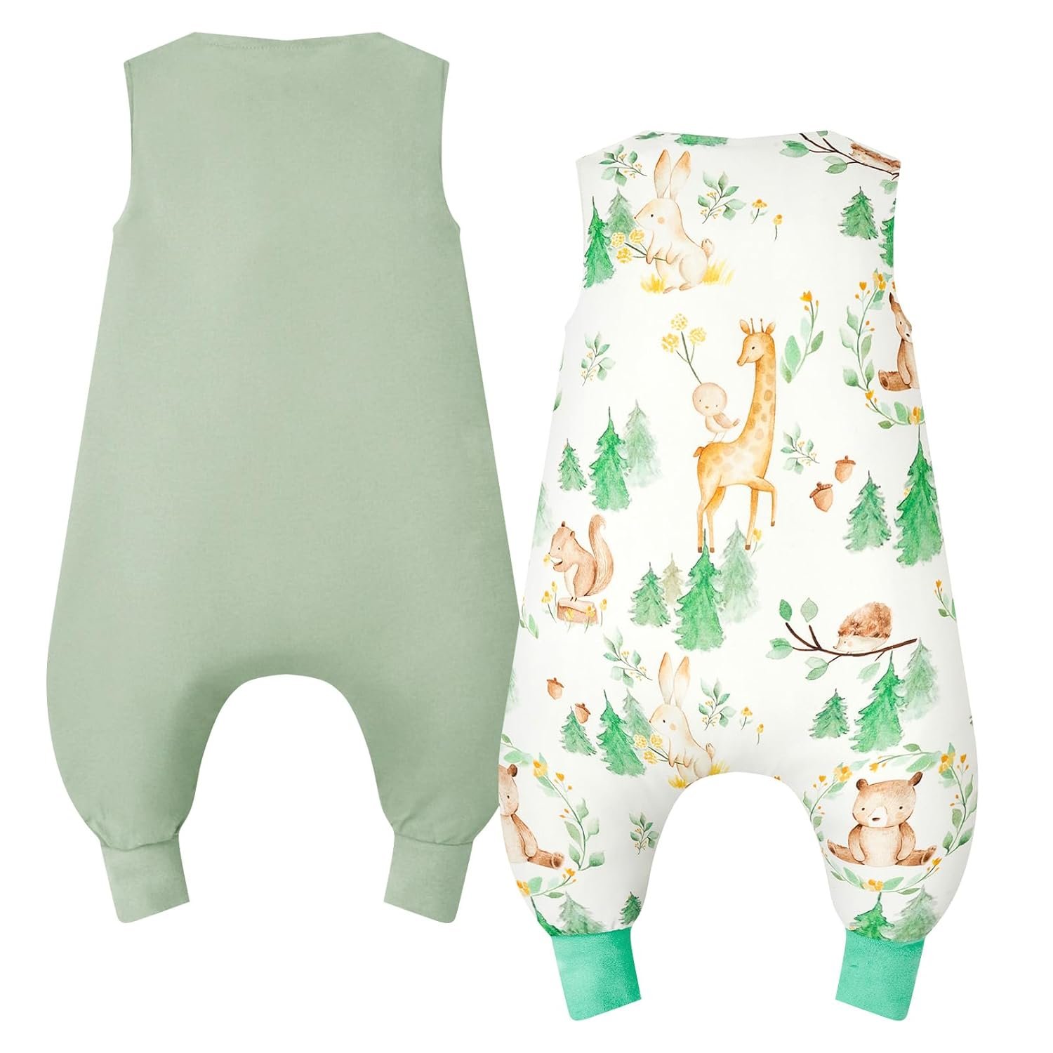 WYTbaby 2 Pack Toddler Sleep Sack with Feet 1.0 Tog 2t-3t, 100% Cotton Sleeveless Toddler Wearable Blanket Baby Sleeping Bag, Forest Animals + Dark Green