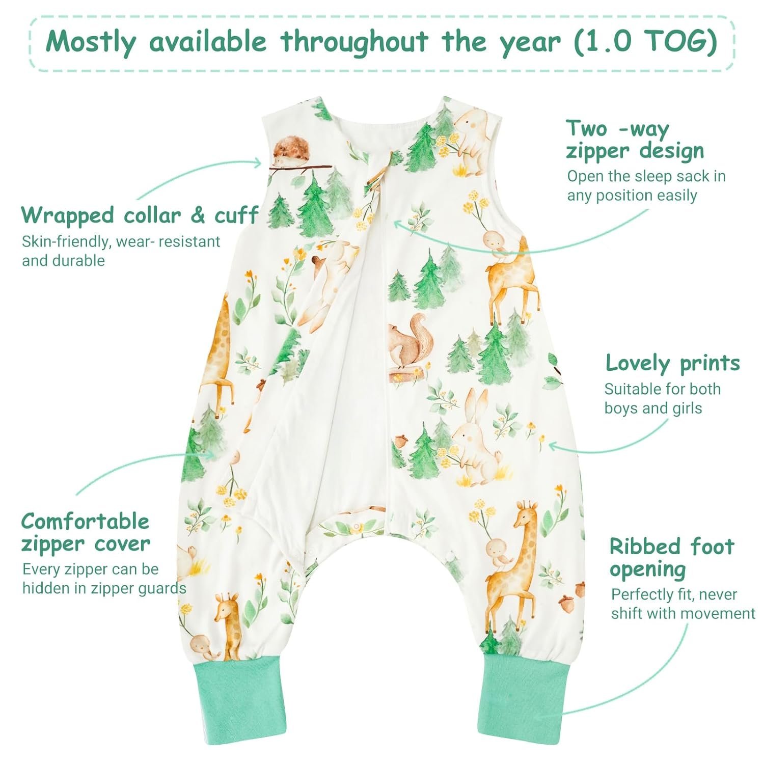 Cute animal design: The cute baby sleeping bag is printed with an animal motif. It is trendy and unique, making it an ideal gift option for your boys and girls.