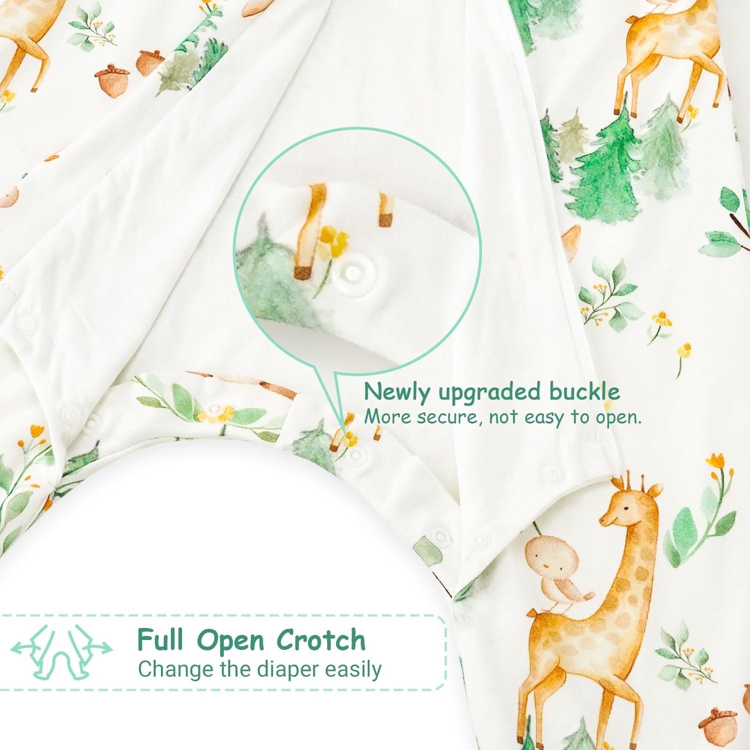 Practical design: Sleep sack for baby allows your baby to stand and move without falling, while the extended crotch of the baby sleeping bag offers enough space for kicking and stretching. The crotch buckle design makes it quick and easy to change diapers, even when baby is asleep. The good workmanship and zippers make baby sleeping bag durable and machine washable.