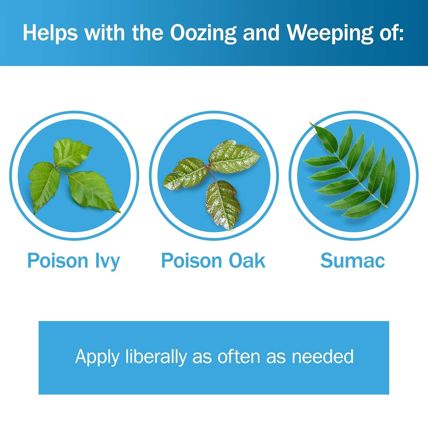 The skin protectant can also help dry the oozing and weeping of Poison Ivy, Oak, and Sumac. Apply liberally as often as needed.